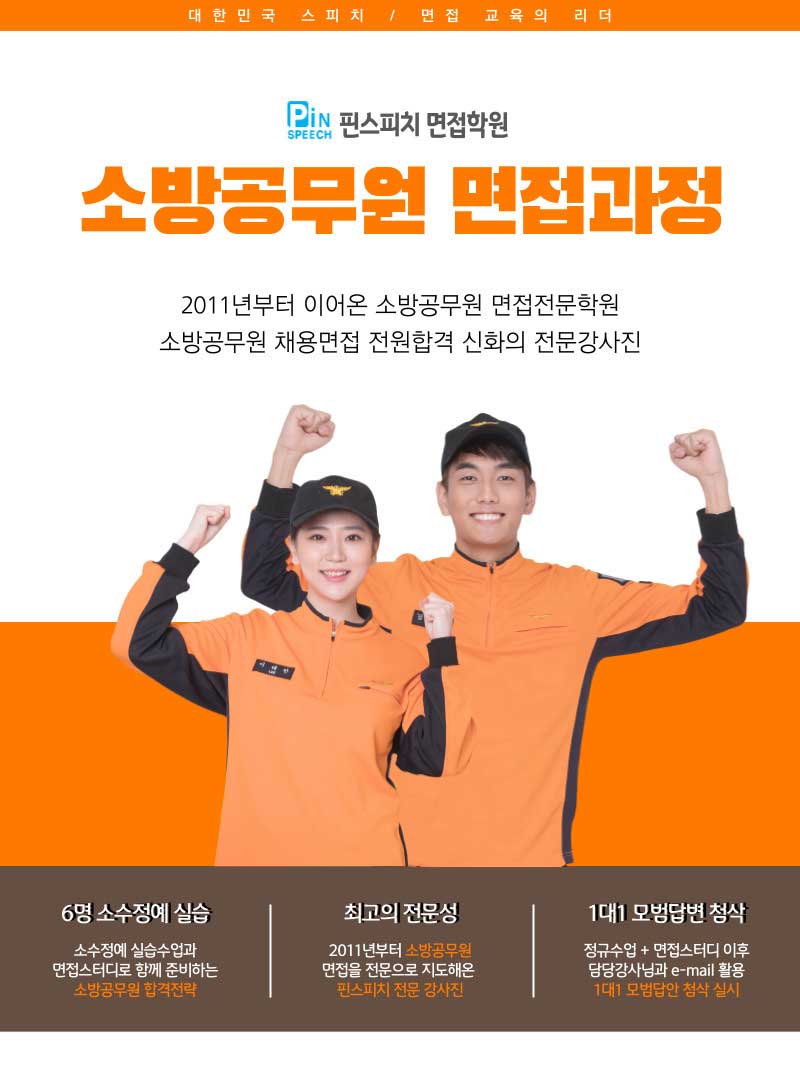 23년 소방공무원면접 준비는 핀스피치 면접 전문학원에서 함께 하세요.